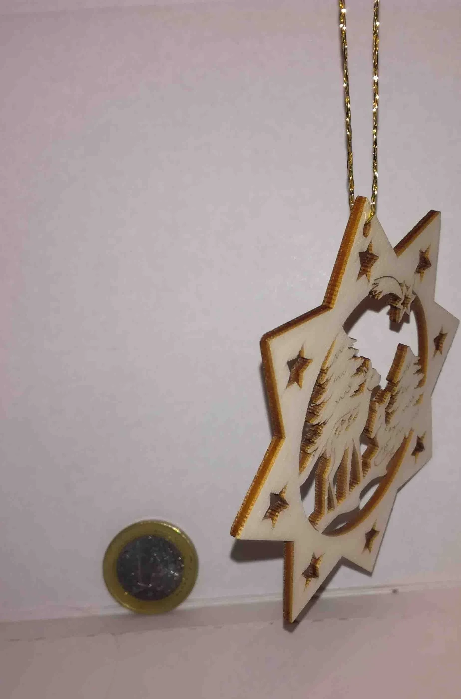 Decorazione natalizia in legno anche per albero di Natale stella cometa con due cerbiatti nella neve