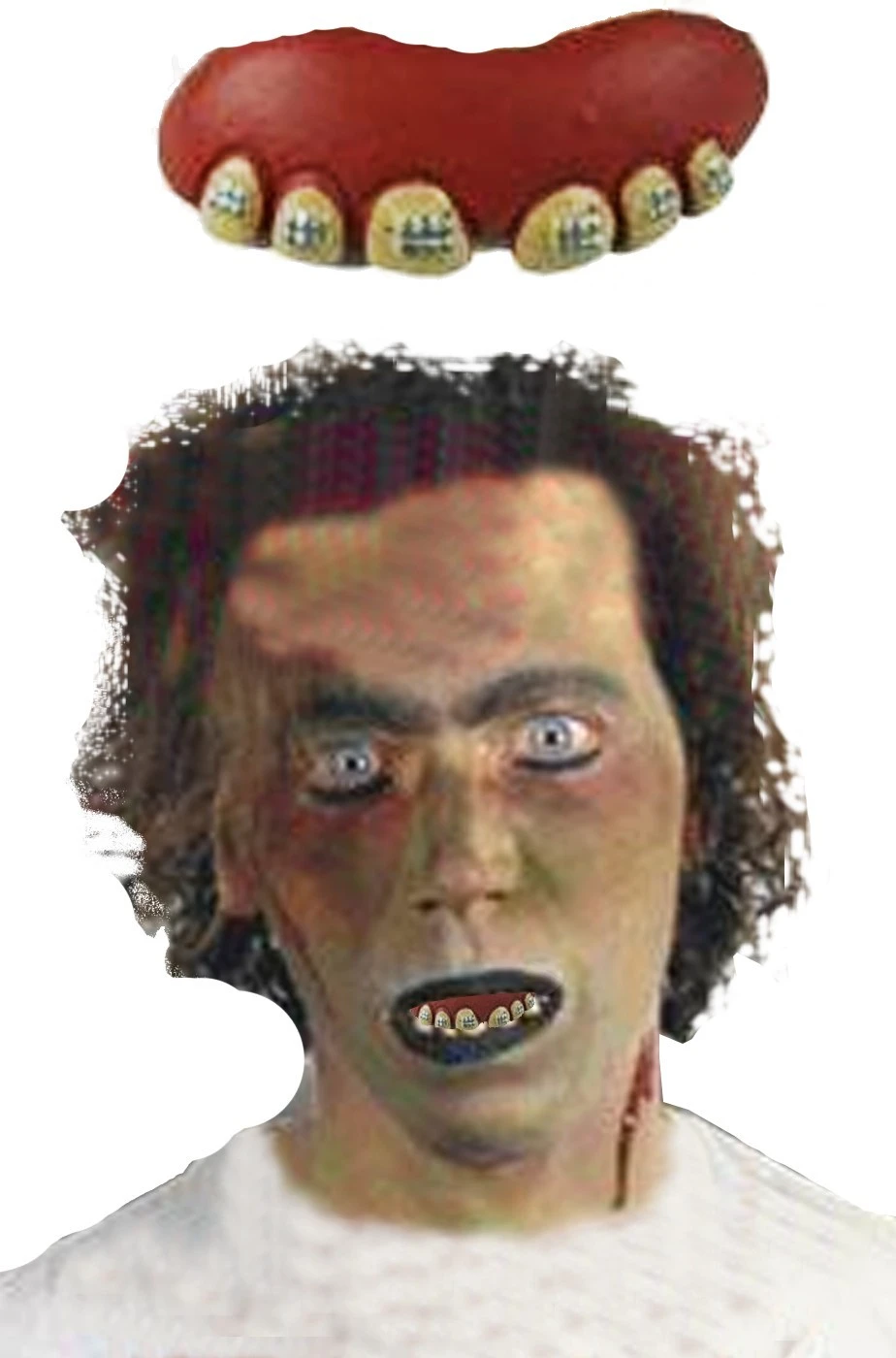 Dentiera adulto mostro in latex morbidissimo denti finti incapsulati con apparecchio.