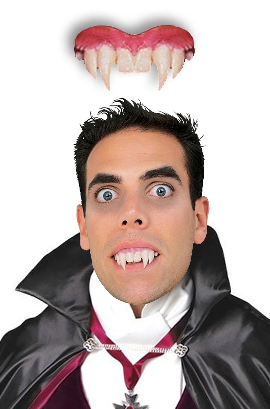 Dentiera rigida denti finti a 4 canini vampiro lunghi (zanne) per trucco da vampiro o da lupo mannaro. Si adatta alla tua dentatura con l’incluso bicomponente ma ATTENZIONE LA RIUSCITA DIPENDE FORTEMENTE DALLA MESSA IN OPERA E DALLA CONFORMAZIONE DI PALATO E ARCO DENTALE. Leggere con attenzione i dettagli a fondo pagina.