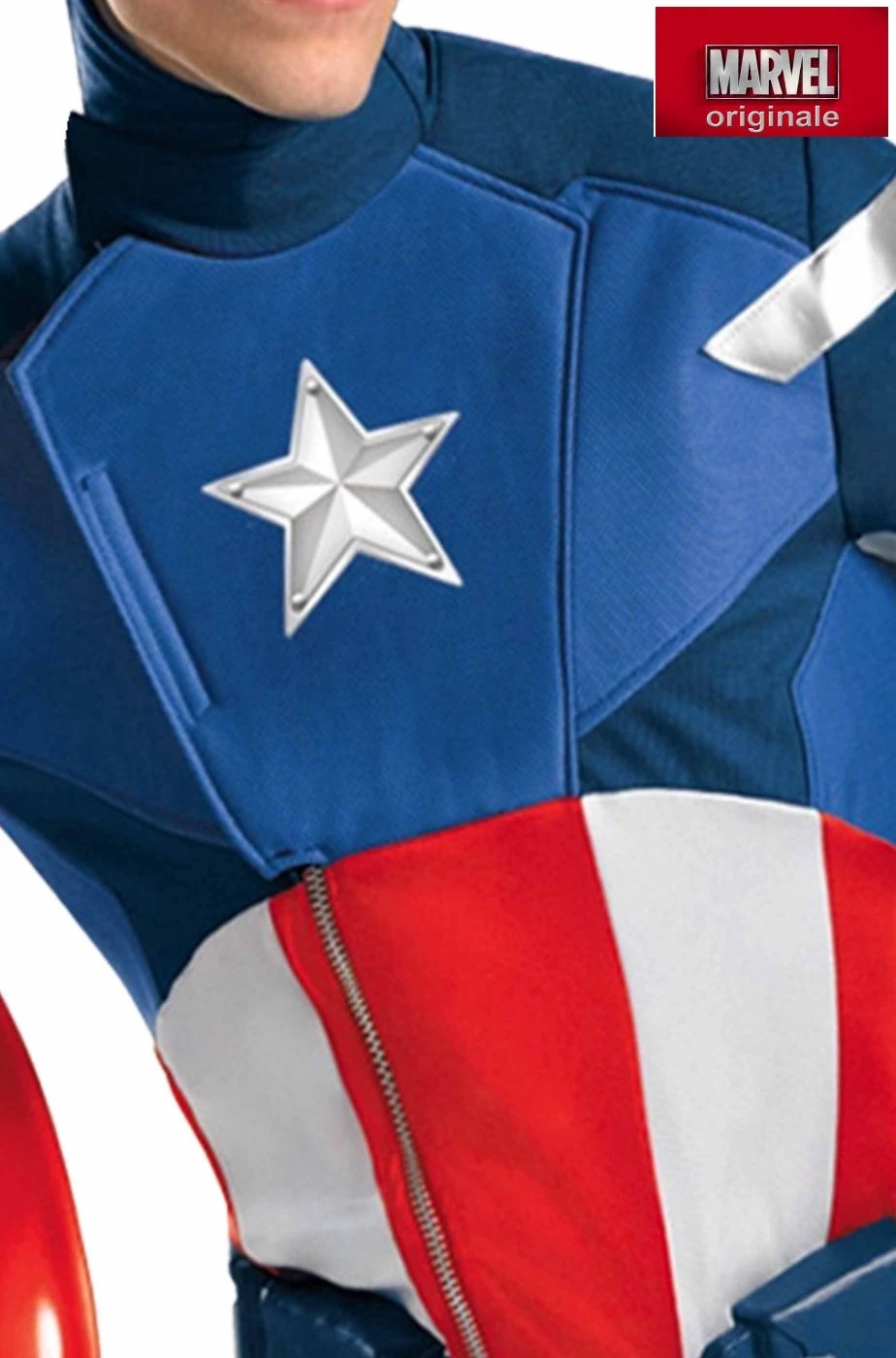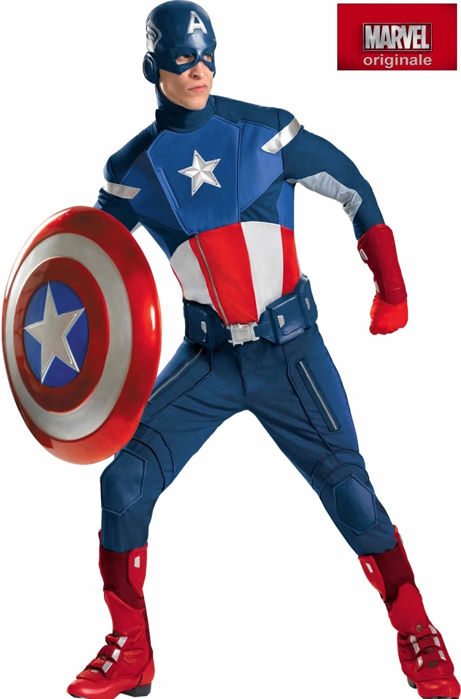 Straordinaria replica del costume di Capitan America o Captain America come quello vero indossato da Chris Evans nel film The Avengers adulto versione Cosplay da collezione.