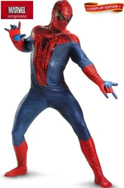 Costume di altissima qualità Spiderman adulto Uomo Ragno con ragnatela e finiture in rilievo.