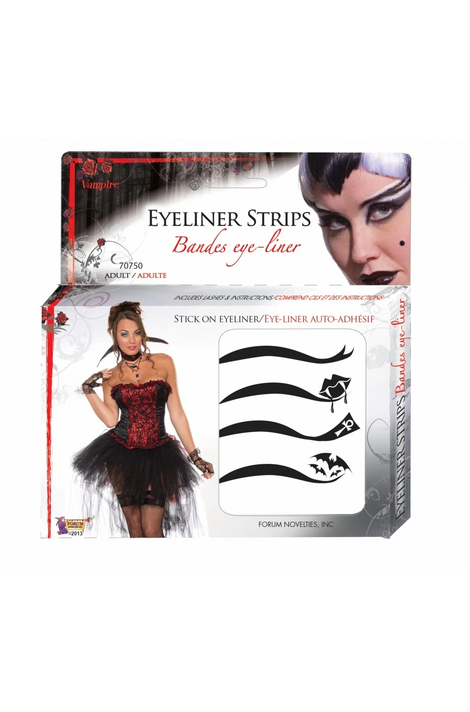Kit eyeliner per trucco Halloween da vampira. Fantastico non si può realizzare un buon costume di Halloween senza un perfetto trucco a tema? Con questi eyeliners gia’ pronti da applicare come tatuaggi ad acqua avrai disegni a tema intorno agli occhi impossibili da realizzare a mano ed il tuo sguardo tenebroso sara’ indimenticabile con questo trucco la sera di Halloween.