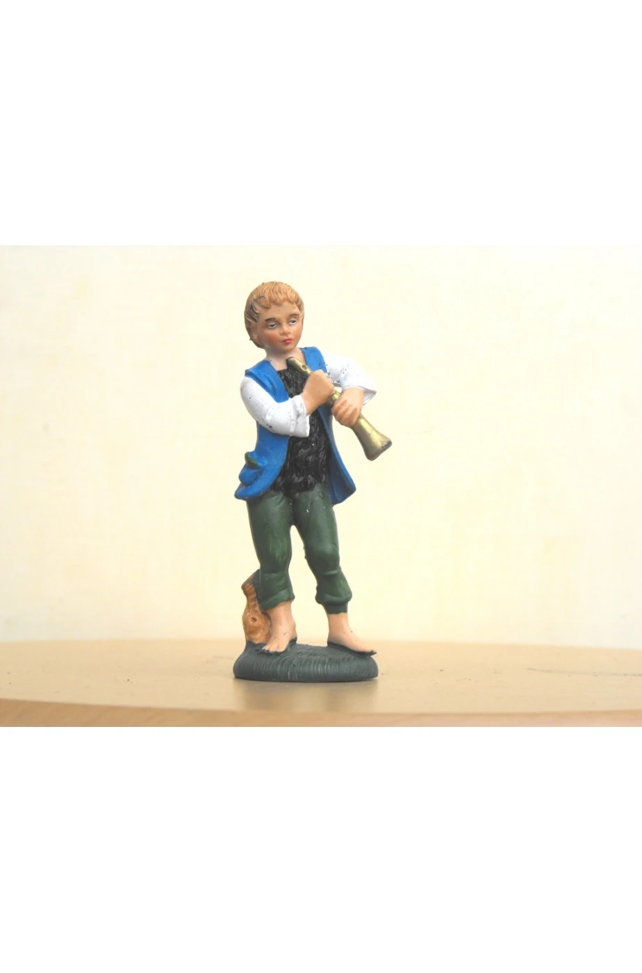 Figurina Presepe In Plastica (cm 10) Zampognaro Con Gilet Azzurro