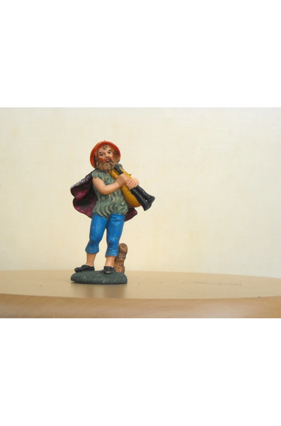 Figurina Presepe In Plastica (cm 10) Zampognaro Con Gilet Verde Pelliccia