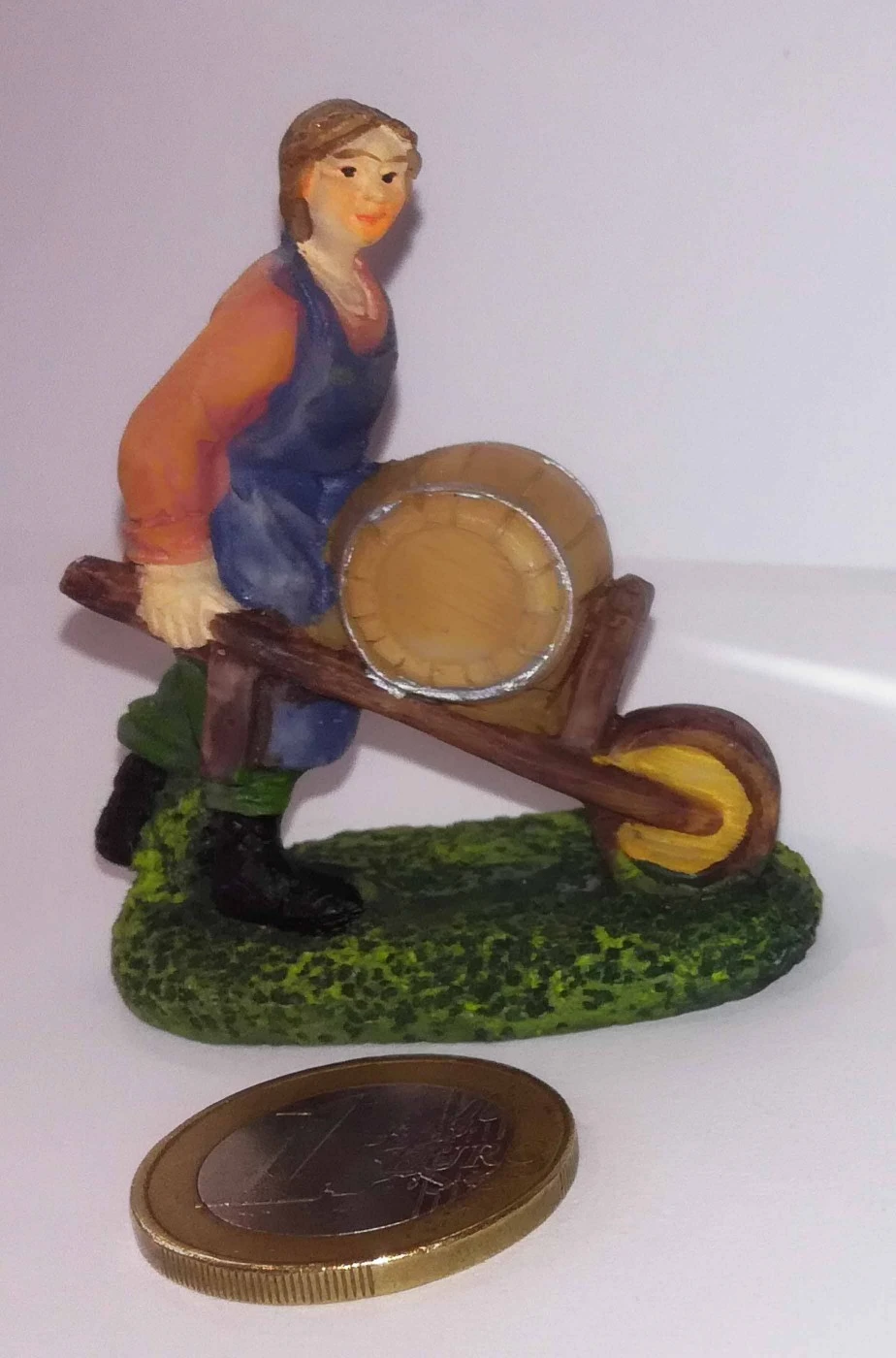 Figurina Presepe In Plastica (cm 5,5) Bottaio Vinaio Con Carriola