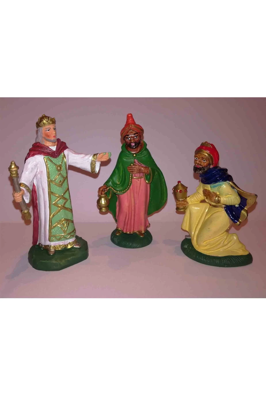 set di tre statuine del presepe i tre re magi alti 10cm cad, Melchiorre, Baldassarre e Gaspare in plastica.