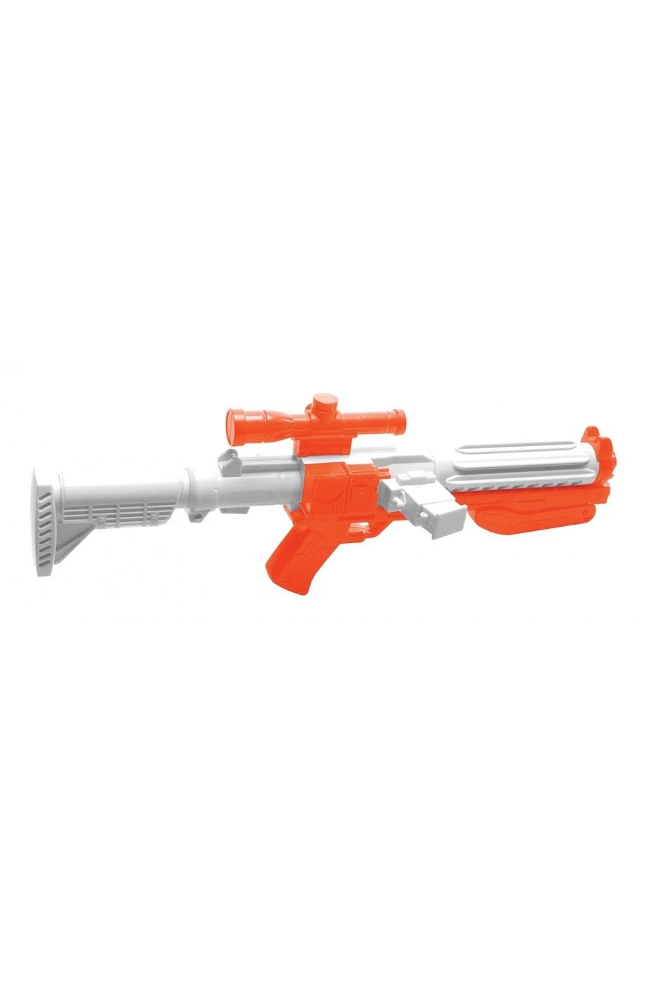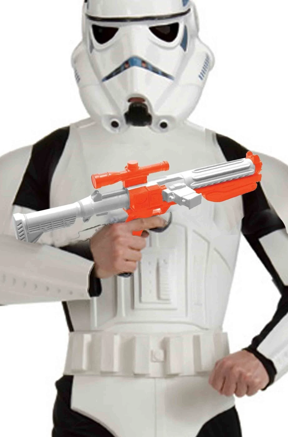 Questo fucile da soldato delle truppe imperiali e’ quindi decorativo per costumi cosplay ma non e’ un fucile funzionante. La colorazione bianca ed arancione e’ dovuta alla normativa internazionale sulle armi finte ma molti nostri clienti lo hanno reso interamente bianco con della semplice vernice acrilica spray bianca opaca reperibile in qualsiasi fai da te.