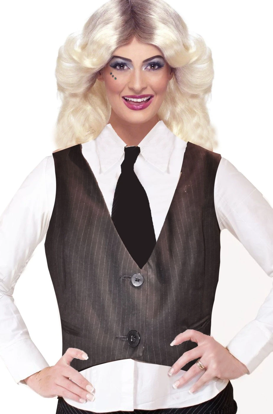 Elegante mini gilet gessato grigio da donna con le righine e due bottoni. Completa ogni vestito da gangster donna anni 20 anni 30 o charleston oppure può essere indossato sulla tua camicetta ogni giorno.