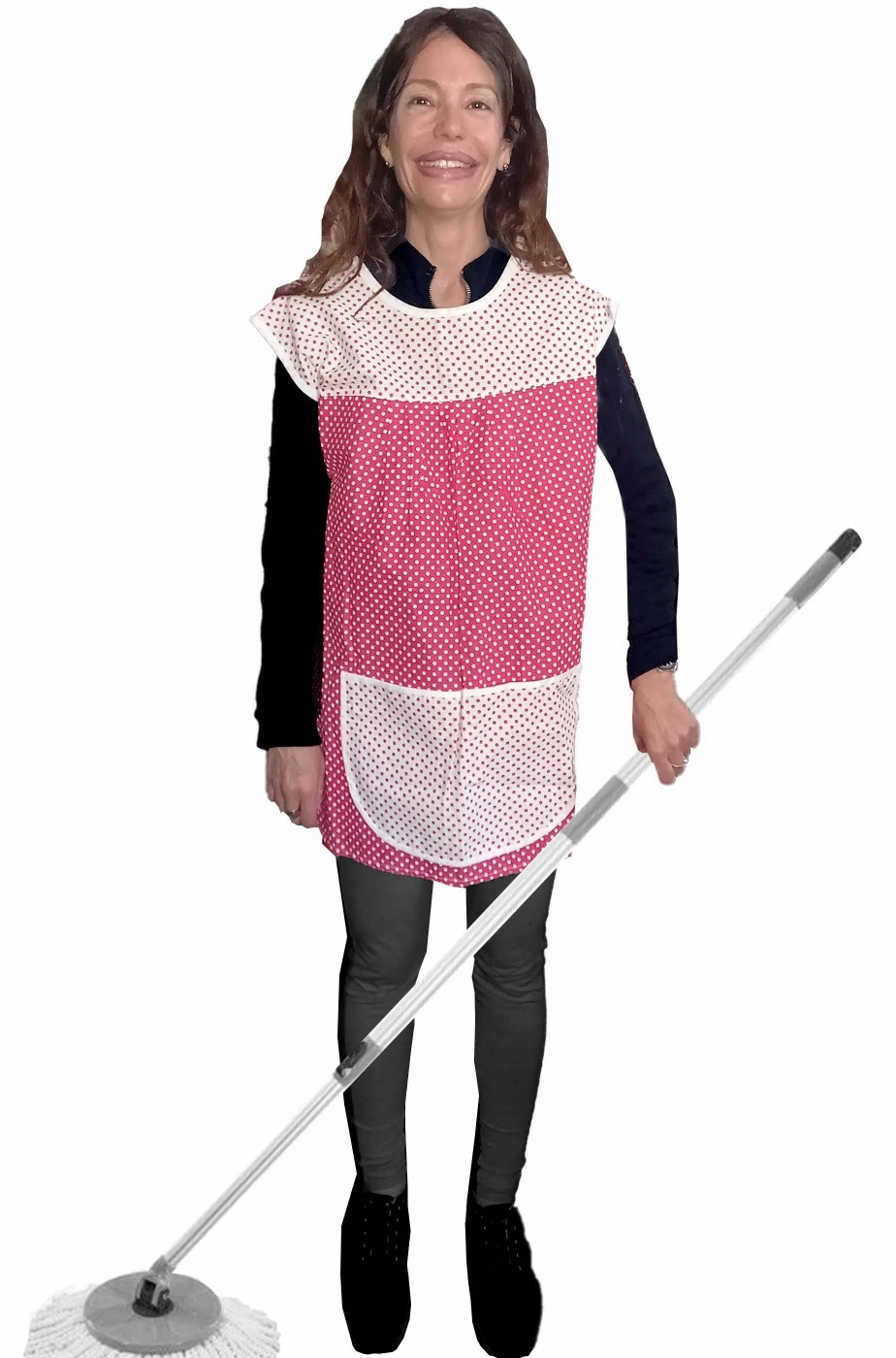 Rifinito con un comodo tascone sul davanti per tenere stracci e detersivi o tutto ciò che ti servira’ per una pulizia comoda, efficace e senza sporcare i tuoi vestiti, una casacca senza maniche per pulizie che sara’ un perfetto grembiulino per stare in casa e fare ciò che piu’ ti va.