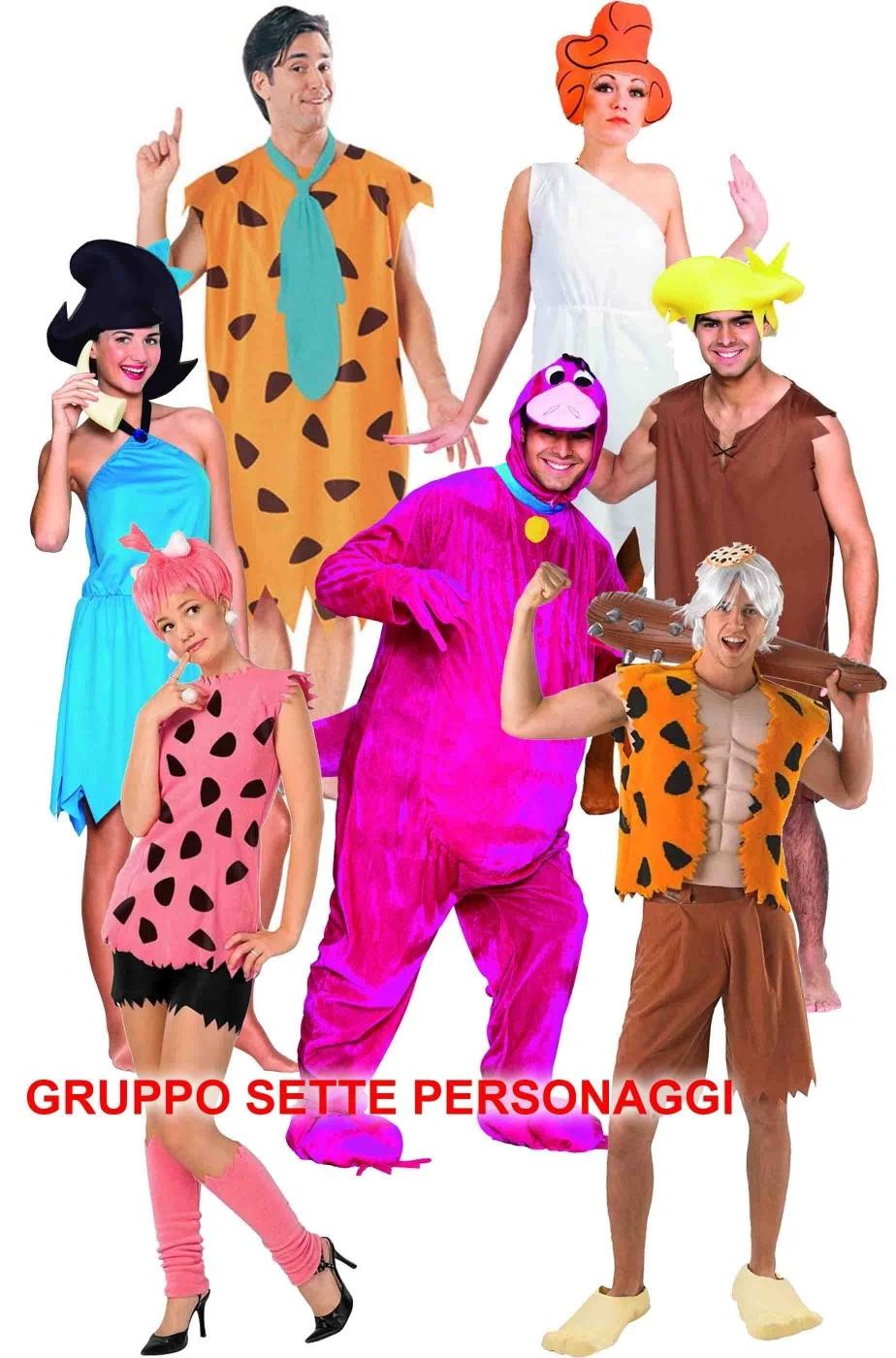 Flintstones, ecco i Flintstones gli Antenati sono qui in TV e non solo! Potranno essere anche sul tuo carro di carnevale con questo straordinario gruppo di ben sette costumi adulto con i personaggi dei cartoni animati piu’ amati della storia e portati anche al cinema.