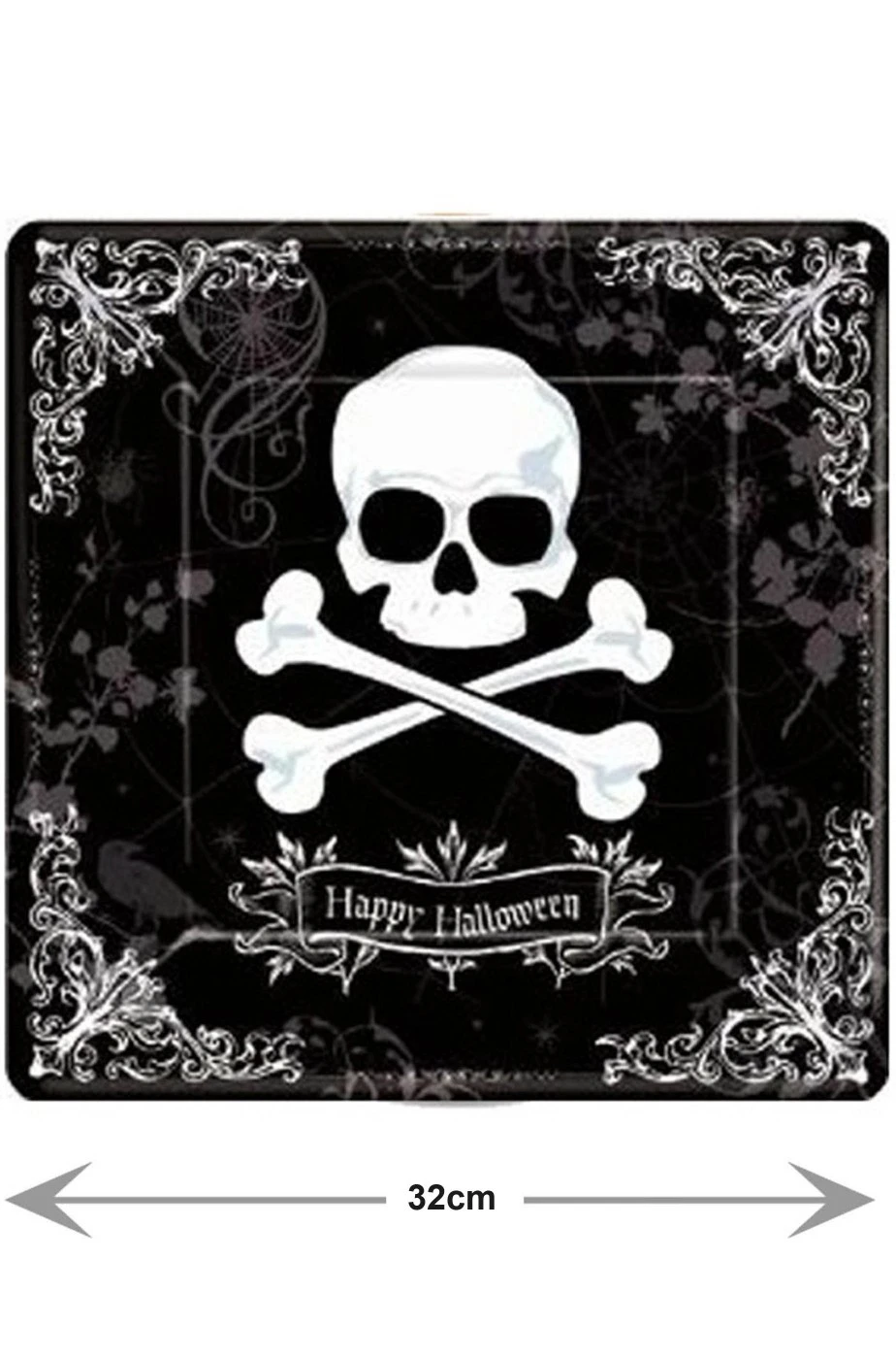 Halloween Party Jolly Roger Piatto Di Portata In Plastica Con Teschio 32cm