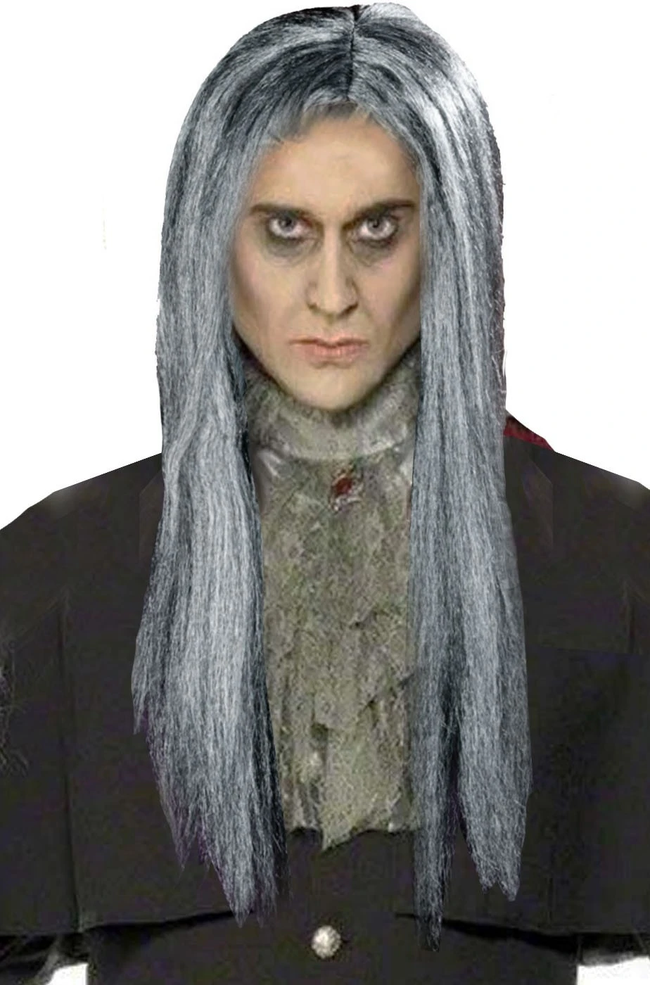 Parrucca grigia liscia lunga per maghi, personaggi biblici, per Leonardo da Vinci o vampiri