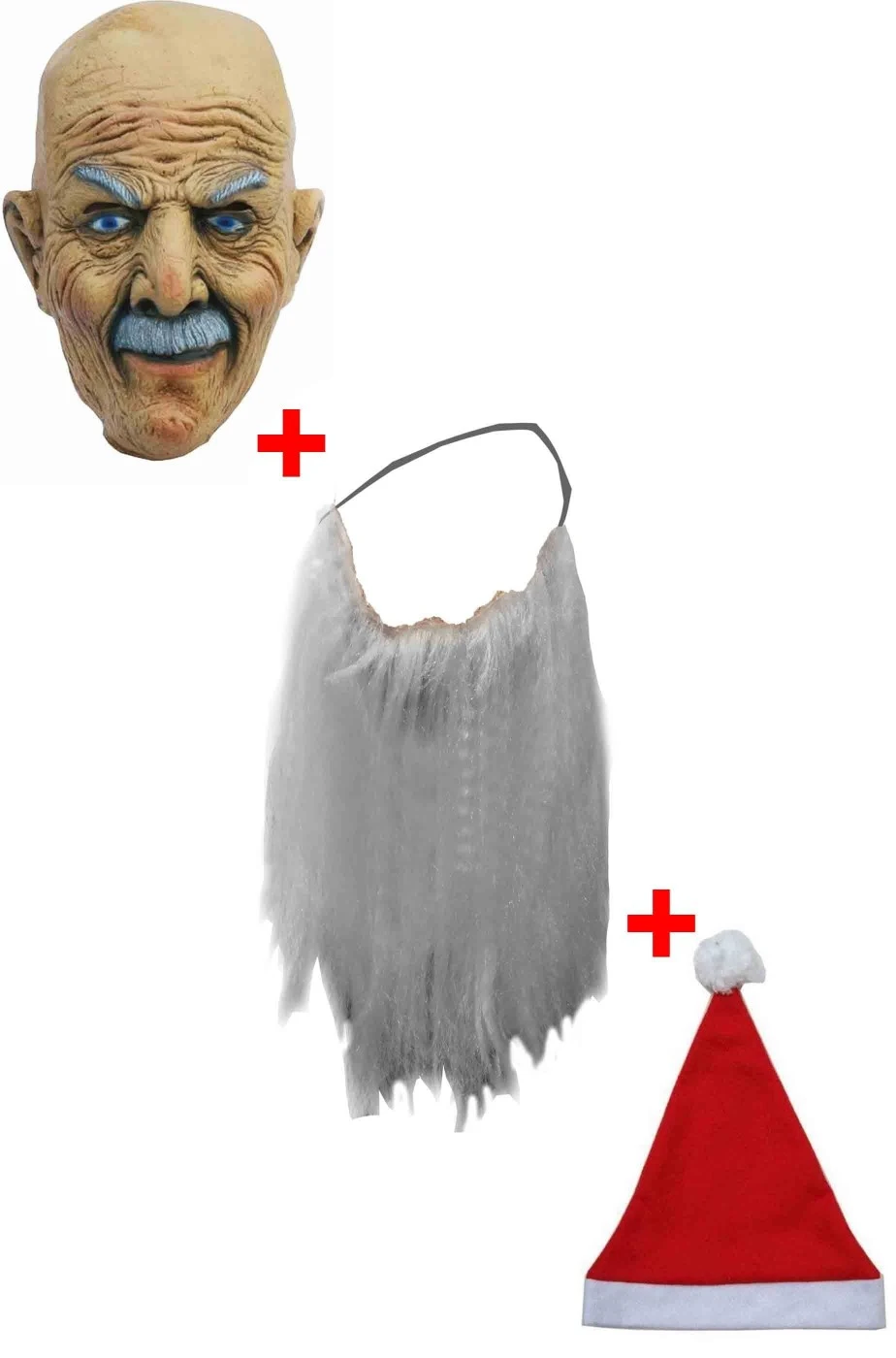 Un altro dei nostri pacchetti che prepariamo per te che vuoi vestirti da Babbo Natale e non farti riconoscere. Questo e’ un set composto da una maschera da vecchio a 3/4 ovvero che copre tutto il viso, la parte superiore della testa e la parte superiore del collo posteriore. La parte inferiore la potrai coprire con il colletto risvoltato. Con questo kit creerai una maschera da Babbo Natale con l’espressione naturale.