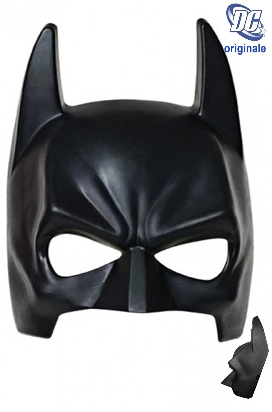 Maschera di Batman bambino di plastica solo frontale originale Warner Bros DC Comics. Si indossa con l’elastico incluso. Se l’elastico fosse troppo grande sara’ sufficiente un piccolo nodo per stringerlo a misura.
