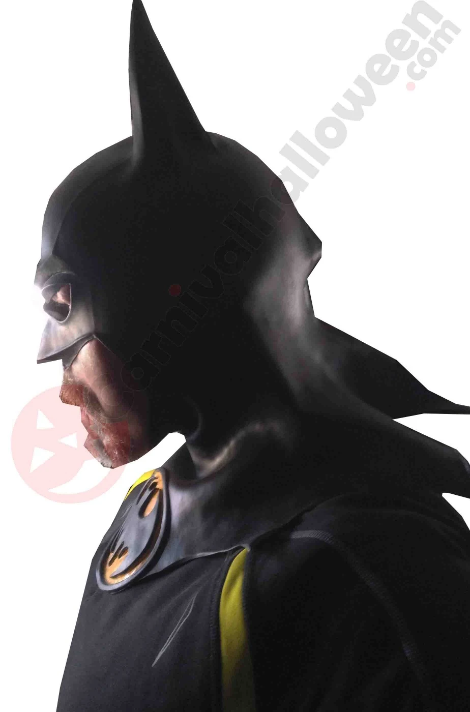 Bellissima maschera di Batman adulto versione Tim Burton‘s Batman The Movie con collare e logo Batman originale. La maschera, con la scolpitura simile a quella indossata da Michael Keaton, copre integralmente la testa. Guarda sul nostro BLOG come manutenerla correttamente e tenerla in forma. Perche’ preferire questa maschera Batman a quella integrale a tutta testa? Perchè un problema di ogni costume da Batman anche da Cosplay è sempre quello di rendere credibile l’attaccatura del mantello alle spalle o al collo e che si usi del velcro oppure dei bottoni, è sempre difficile realizzare un’armatura di Batman in cui il mantello sulle spalle non sembri attaccato dalla nonna. Questa maschera di Batman da adulto, invece, ha il collare in lattice che serve proprio a coprire l’aggancio del mantello sulle spalle.
