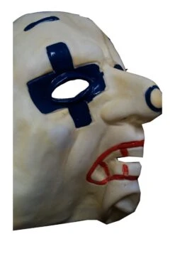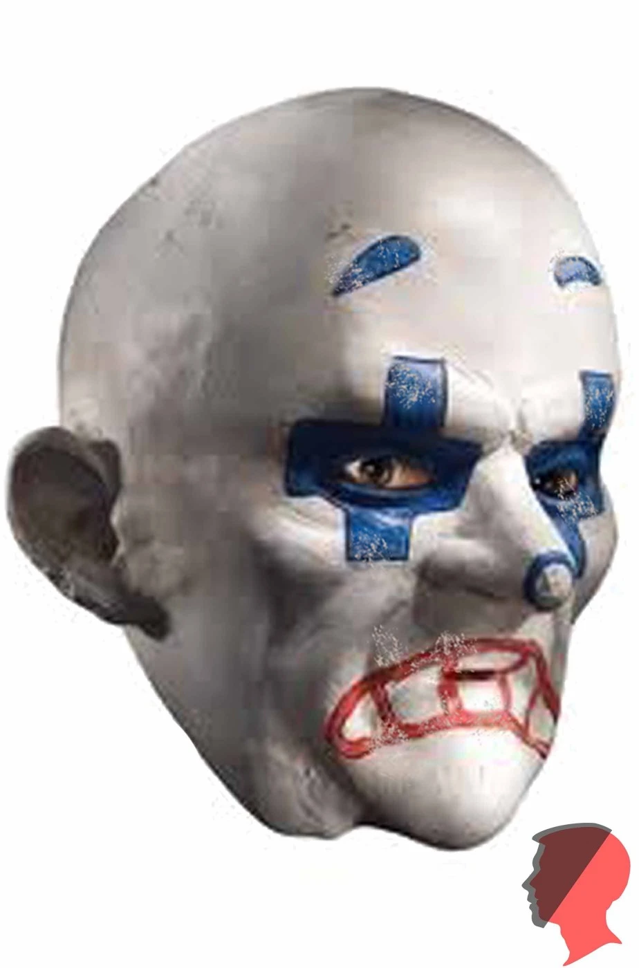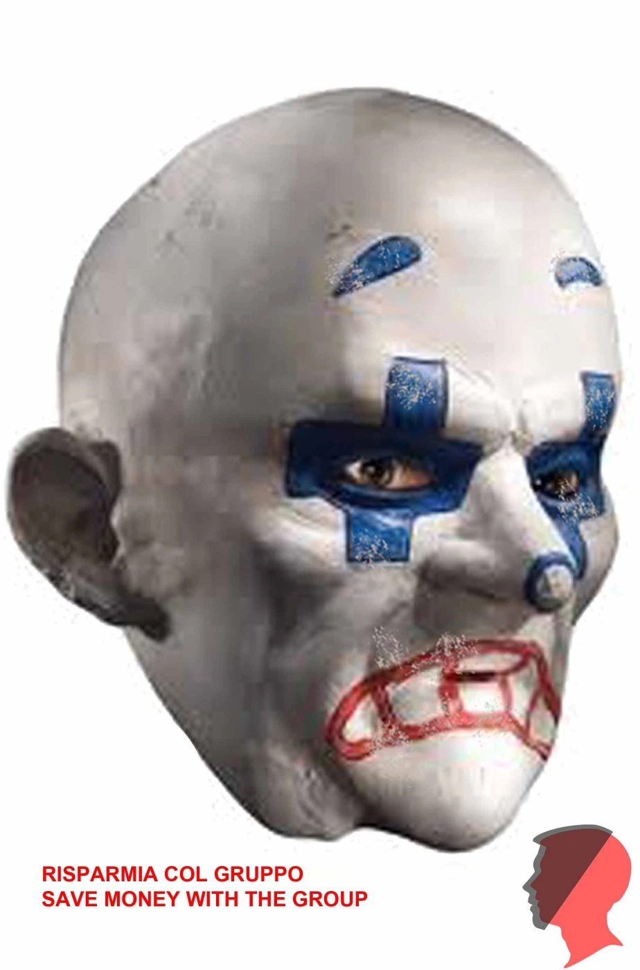 Direttamente dalla trascinante scena della rapina alla Gotham National Bank nel film Batman The Dark Knight in cui il Joker, interpretato dall’inarrivabile Heath Ledger rubava milioni di dollari con la sua banda di pagliacci assassini, ecco l’introvabile serie delle maschere di tutti i personaggi della rapina che portavano i nomi dei sette nani. Questa è la maschera di Chuckles, il clown rapinatore.