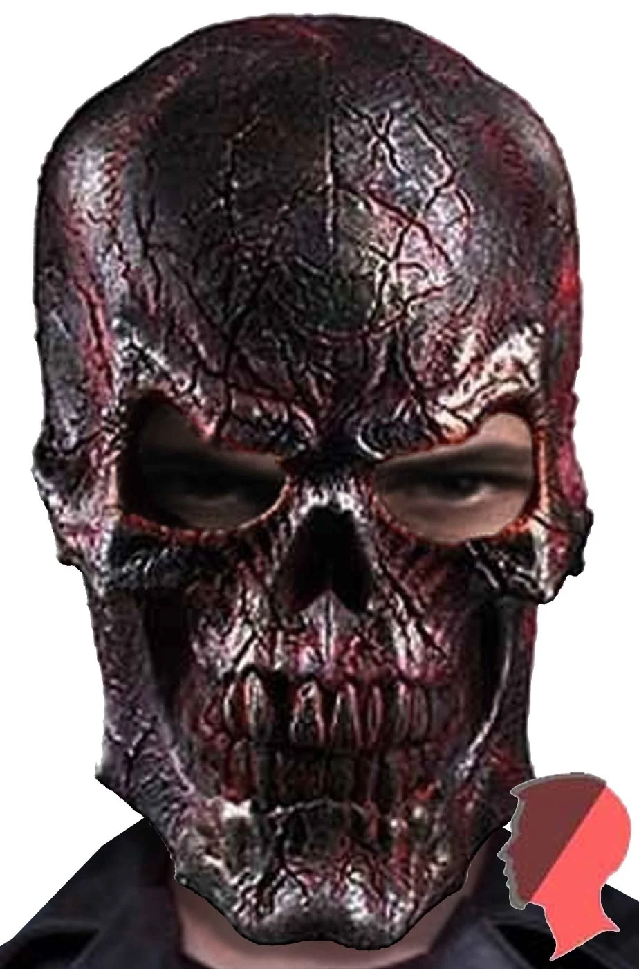 Maschera Da Teschio Grigio Metallizzato Con Venature Rosse Stile Terminator