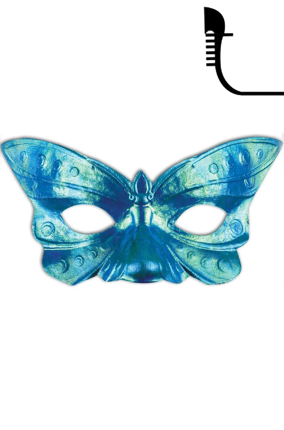 Maschera di Carnevale in stile veneziano a forma di farfalla di un bellissimo colore azzurro perlato molto luminoso. Una maschera per completare qualsiaasi vestito di carnevale. Si indossa con i due elastici da sistemare dietro alle orecchie. Il colore azzurro con riflessi madreperla la rendono molto elegante e di classe anche per un bal masque’. In tessuto morbido con interno floccato per un maggior comfort.