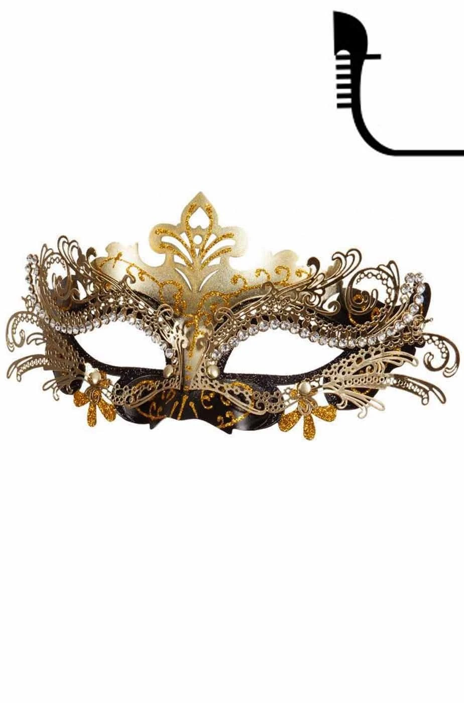 Maschera Di Carnevale Stile Veneziano In Metallo Color Oro E Nera