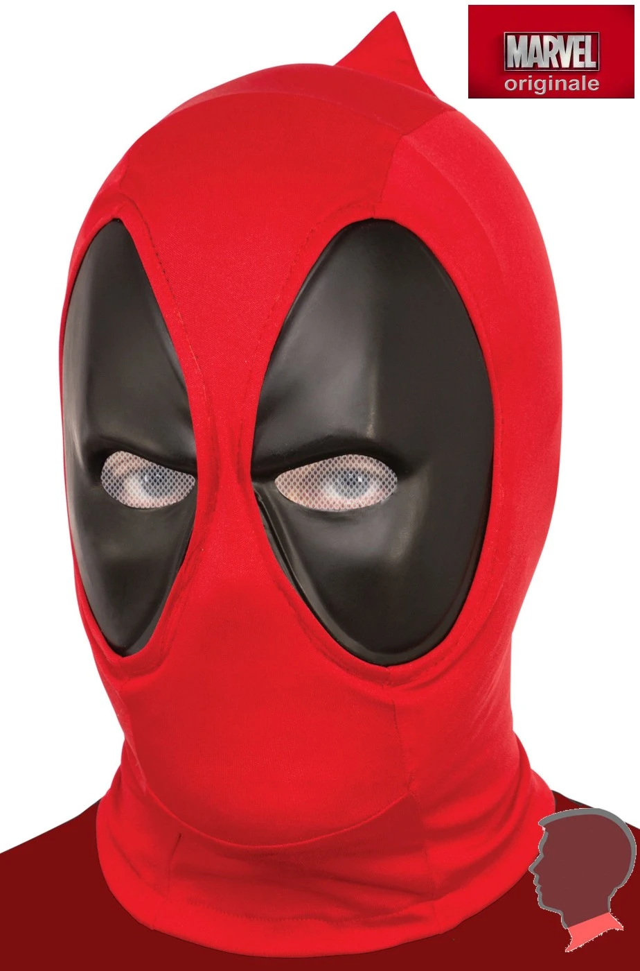 Deadpool, un vero supereroe moderno, che se ne frega del politically correct ed elimina i nemici senza se e senza ma. La maschera non la indossa per nascondere la sua identità ma per nascondere il volto rovinato e non perdere il suo naturale charme femminile. Questa è la sua bellissima maschera che potrai indossare anche sui tuoi vestiti di tutti i giorni o con una felpa col cappuccio ed il tuo fascino sarà perfetto. In tessuto ma con gli occhi di materiale semirigido è anche un perfetto complemento per il tuo costume da Cosplay. Taglia unica adulto.