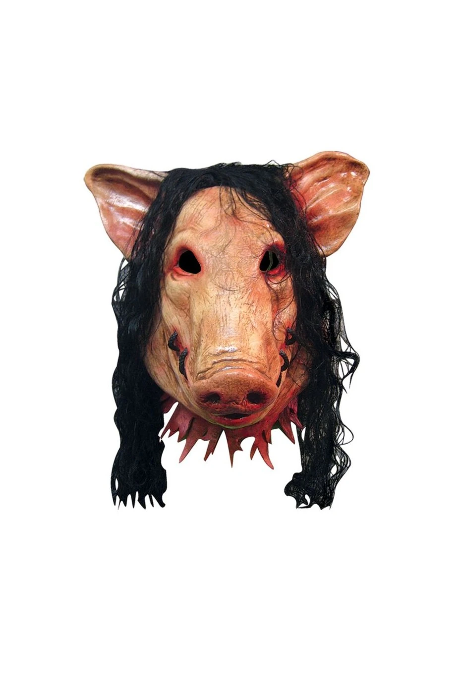 La maschera del maiale macellaio. Impressionante e realistica con le cuciture ed i capelli finti