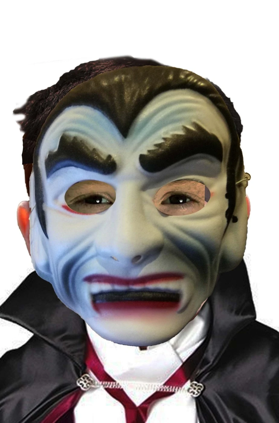 Una perfetta maschera economica di Halloween con l’espressione di un pallido vampiro horror. Realizzata in morbida E.V.A. e’ delicata sul viso e si indossa con l’apposito elastichino incluso. Copre tutto il viso.