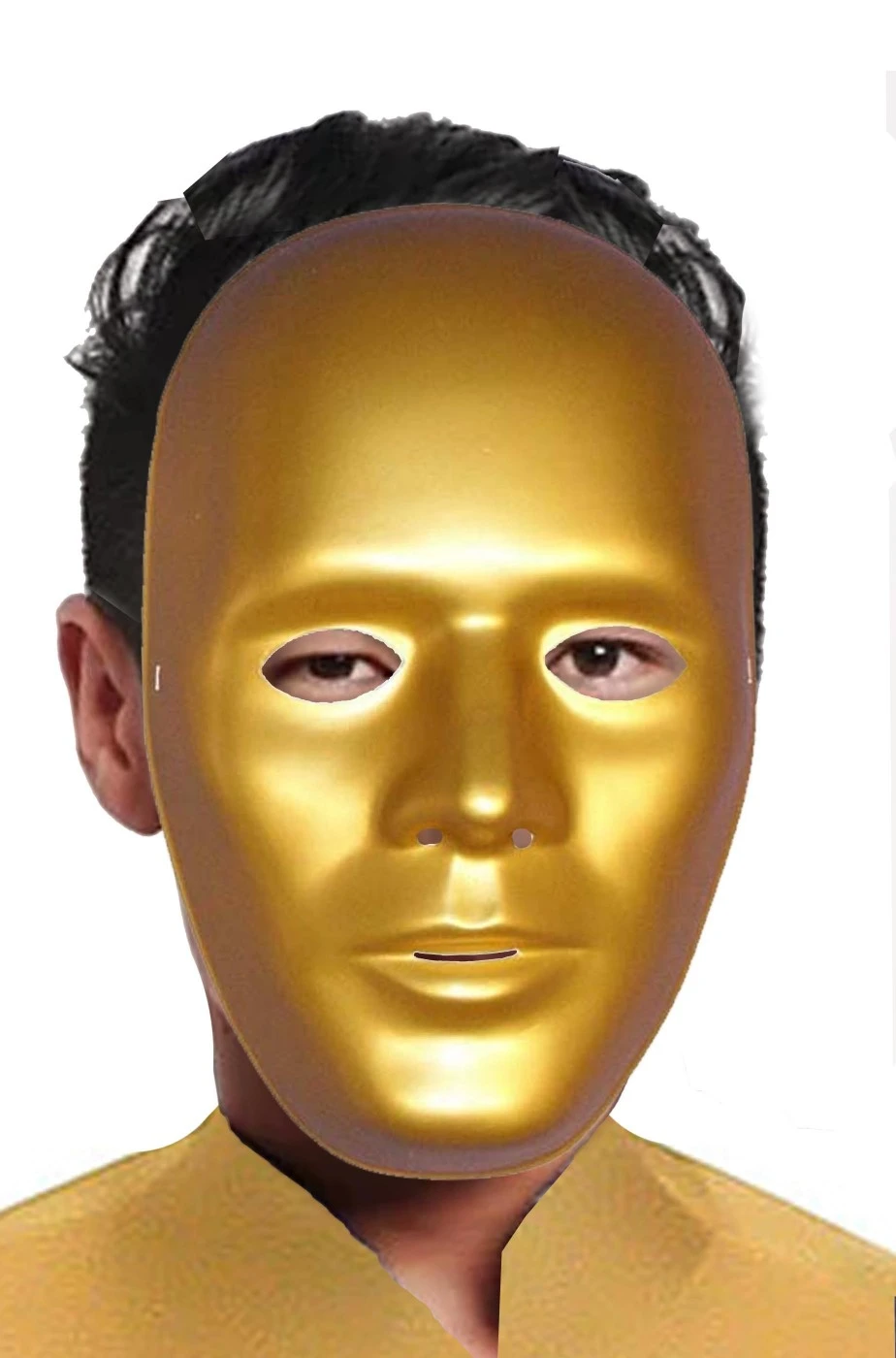 Maschera di carnevale a tutto viso color oro ideale per vestiti di carnevale da robot o androidi. Perfetta da abbinare a morphsuits e tute color oro
