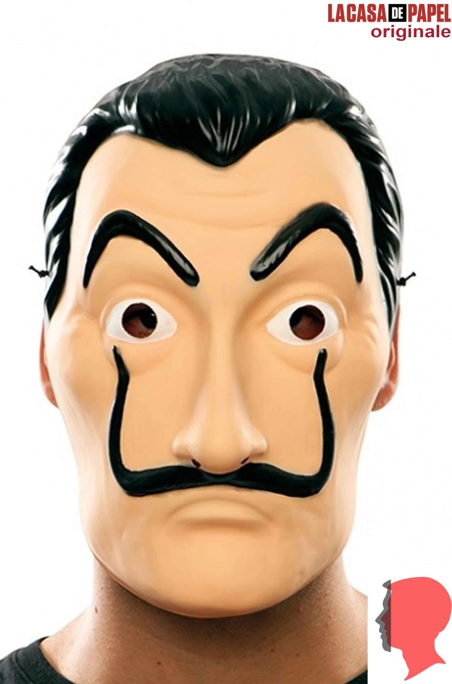 La maschera indossata dai rapinatori piu’ famosi dello Streaming Netflix, la stupefacente rapina senza vittime della storia della TV. Ognuno ha il proprio personaggio in cui si identifica. Berlino, Mosca, Oslo, Helsinki, Nairobi, Denver, Rio, Tokyo e perfino Stoccolma che, agli ordini del meticoloso ed inquietante Professore, Salvador Martin, entra alla Zecca dello stato e….ma se non sai come prosegue, devi guardare la serie su Netflix! Per il costume di carnevale da rapinatore più in del momento acquista la maschera.