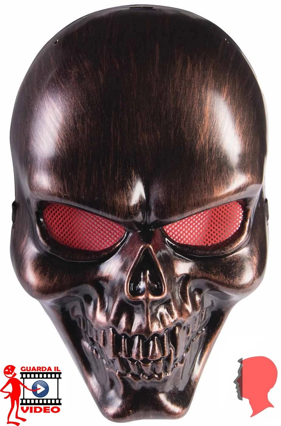 Come travestirsi per Halloween con poca spesa? Ecco una bellissima Maschera da teschio bronzo scuro per adulto con occhi rossi in plastica rigida. Basta una felpa ed il costume di Halloween economico è pronto. un halloween con poco impegno e poca spesa. Guarda il video di questo ed altri due modelli cliccando qui sotto.