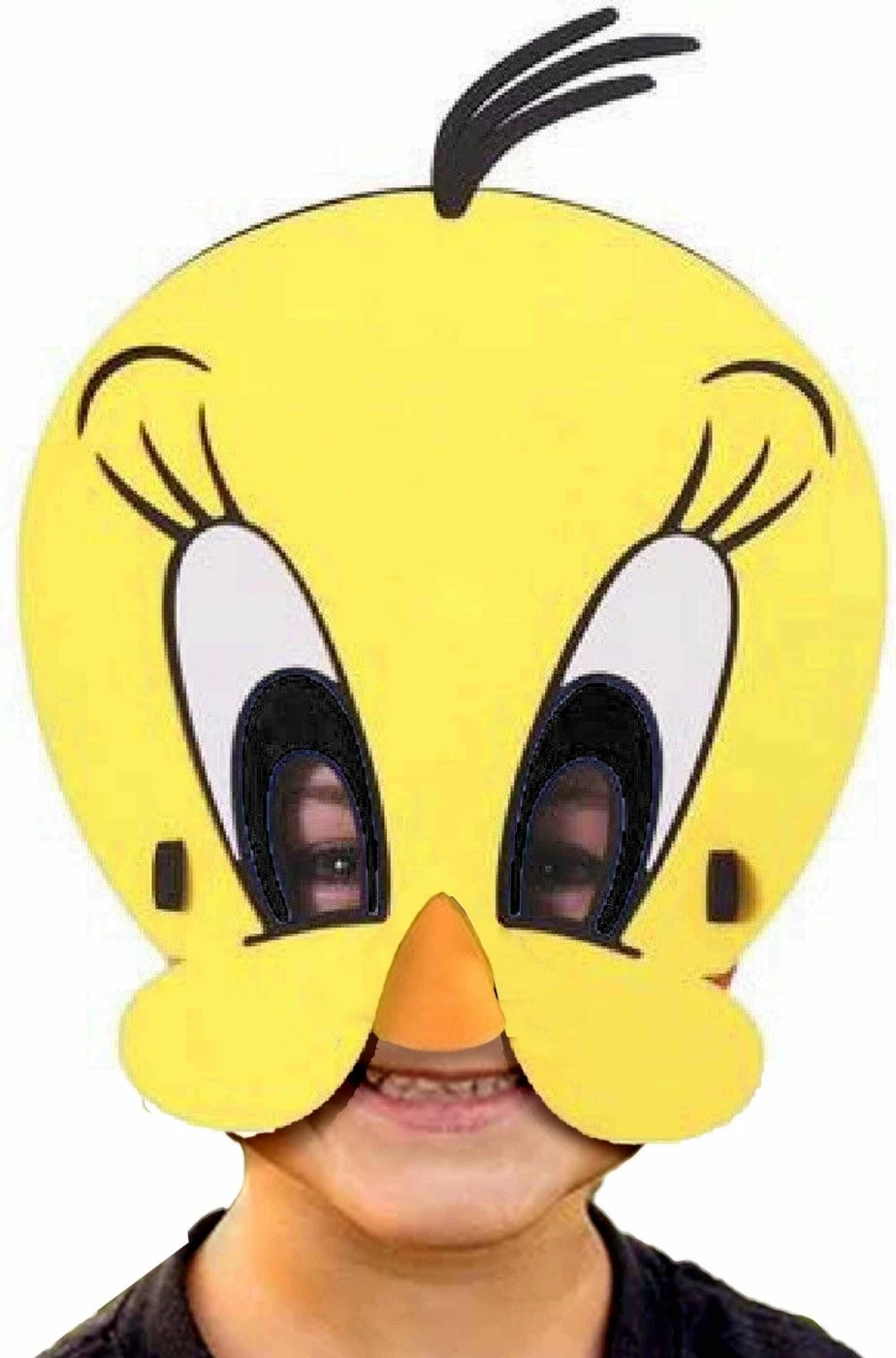 Simpatica e comodissima maschera morbida con il faccione di Titti il Canarino, il famoso petulante personaggio dei Looney Tunes.