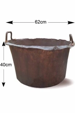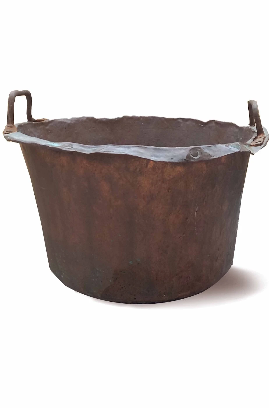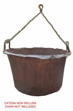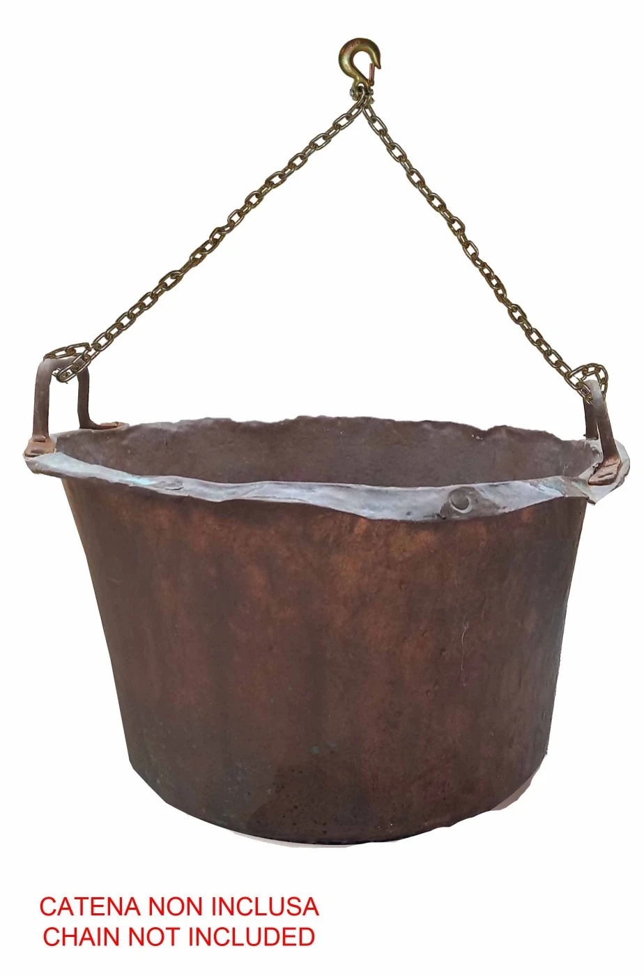 Stupendo paiolo di rame grande usato con maniglie di diaetro 62cm ed altezza 40cm utilizzabile sia catenabile per essere appeso che a terra. Può fungere da grande paiolo per la polenta oppure da portavaso in terrazza o in giardino.