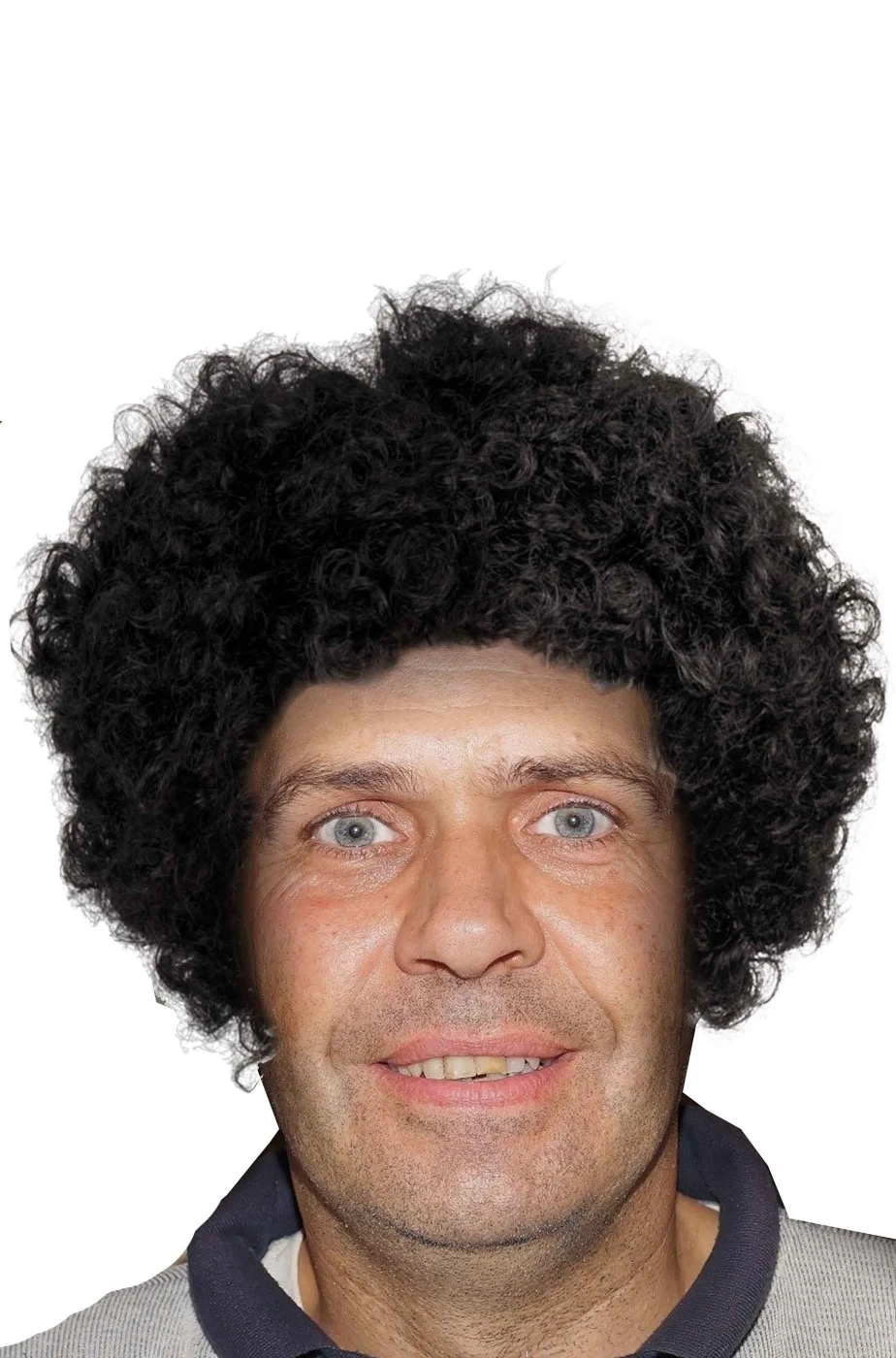Ideale per i clown o per pulp fiction questa parrucca riccia nera economica risolve ogni festa anni 70.