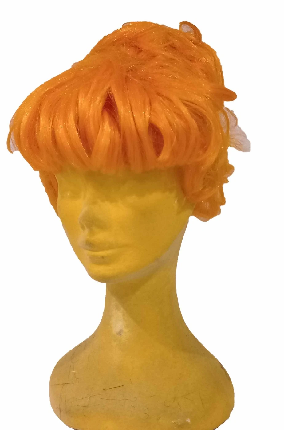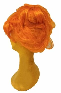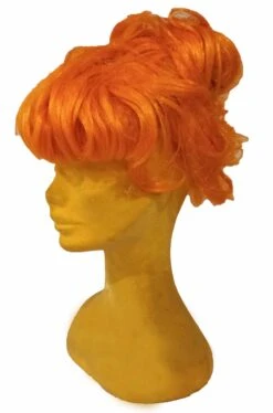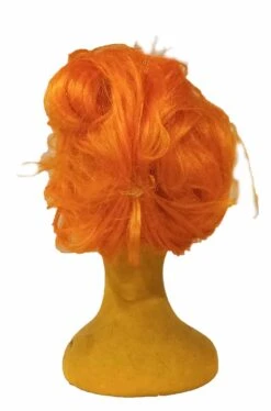 Visto che e’ davvero difficile se non quasi impossibile trovarla sul mercato, abbiamo deciso di realizzare noi una parrucca di Wilma Flintstone, la moglie di Fred degli Antenati dei cartoni animati di Hanna e Barbera ma anche dei film con John Goodman, partendo da una base di parrucca arancione e creandone l’acconciatura con la messa in piega e le forcine.