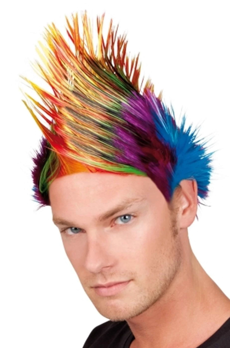 Coloratissima parrucca arcobaleno con cresta pride fantastica e coloratissima. Perfetta per una pride parade ma anche per un cantante punk o rocker anni 80