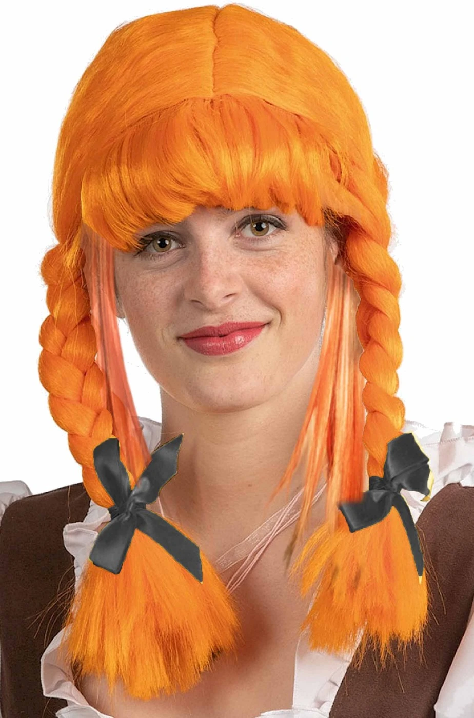 Una parrucca in perfetto stile bavarese modello pippi heidi che e’ perfetta per un costume da donna tirolese da far indossare dalle tue ragazze nella serata della Oktoberfest per animare il locale