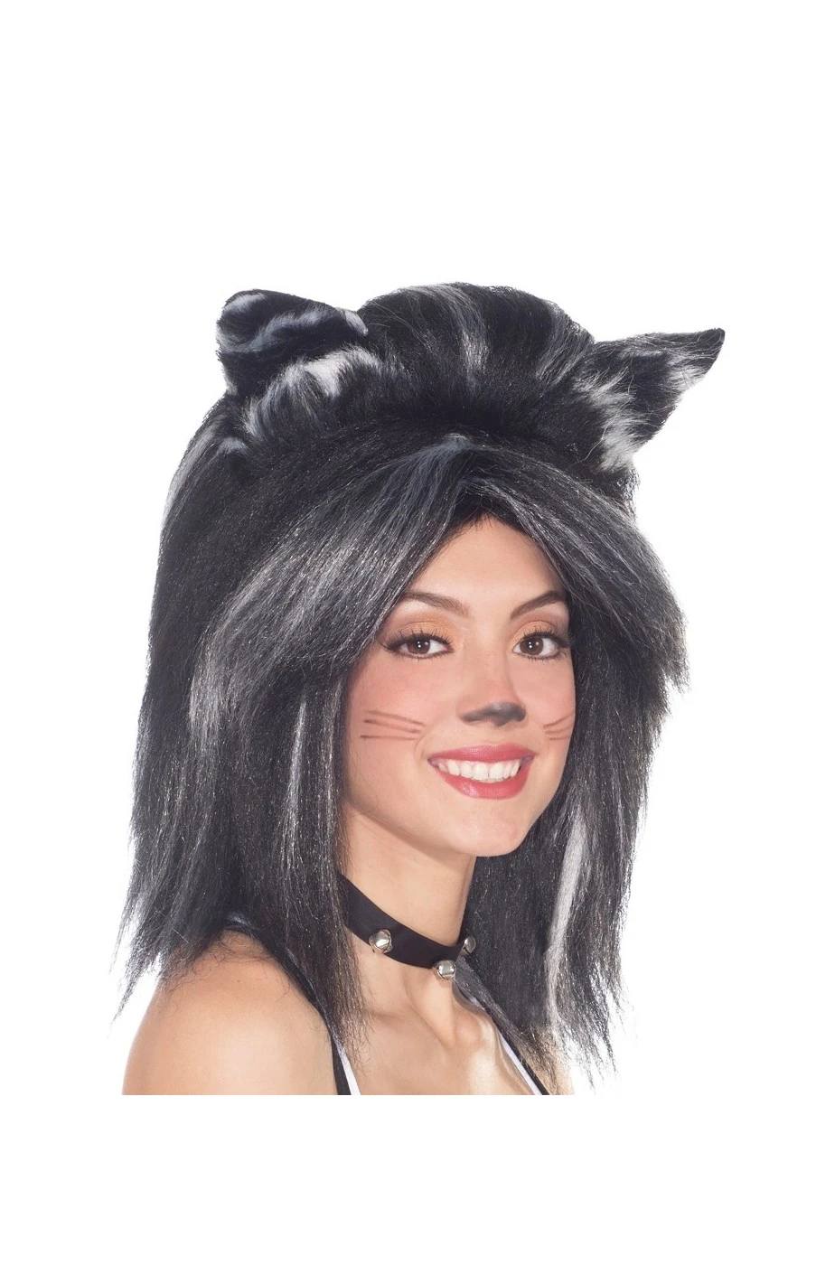 Parrucca da gatto grigio tigrato. Le orecchie da gatto sono inserite nella parrucca.