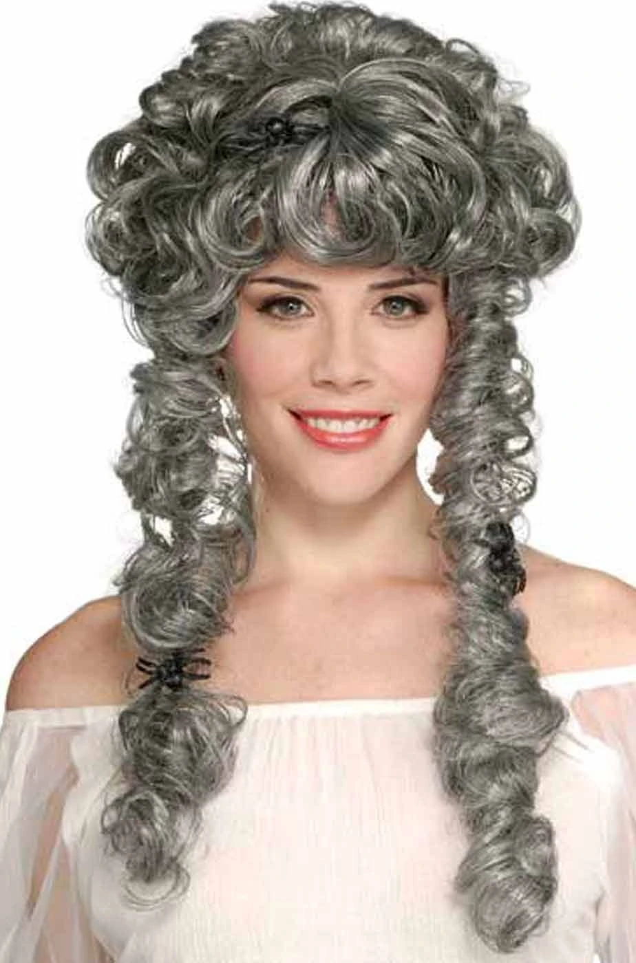 Parrucca 700 Maria Antonietta grigia lunga con boccoli acconciatura ad alveare per donna adulta