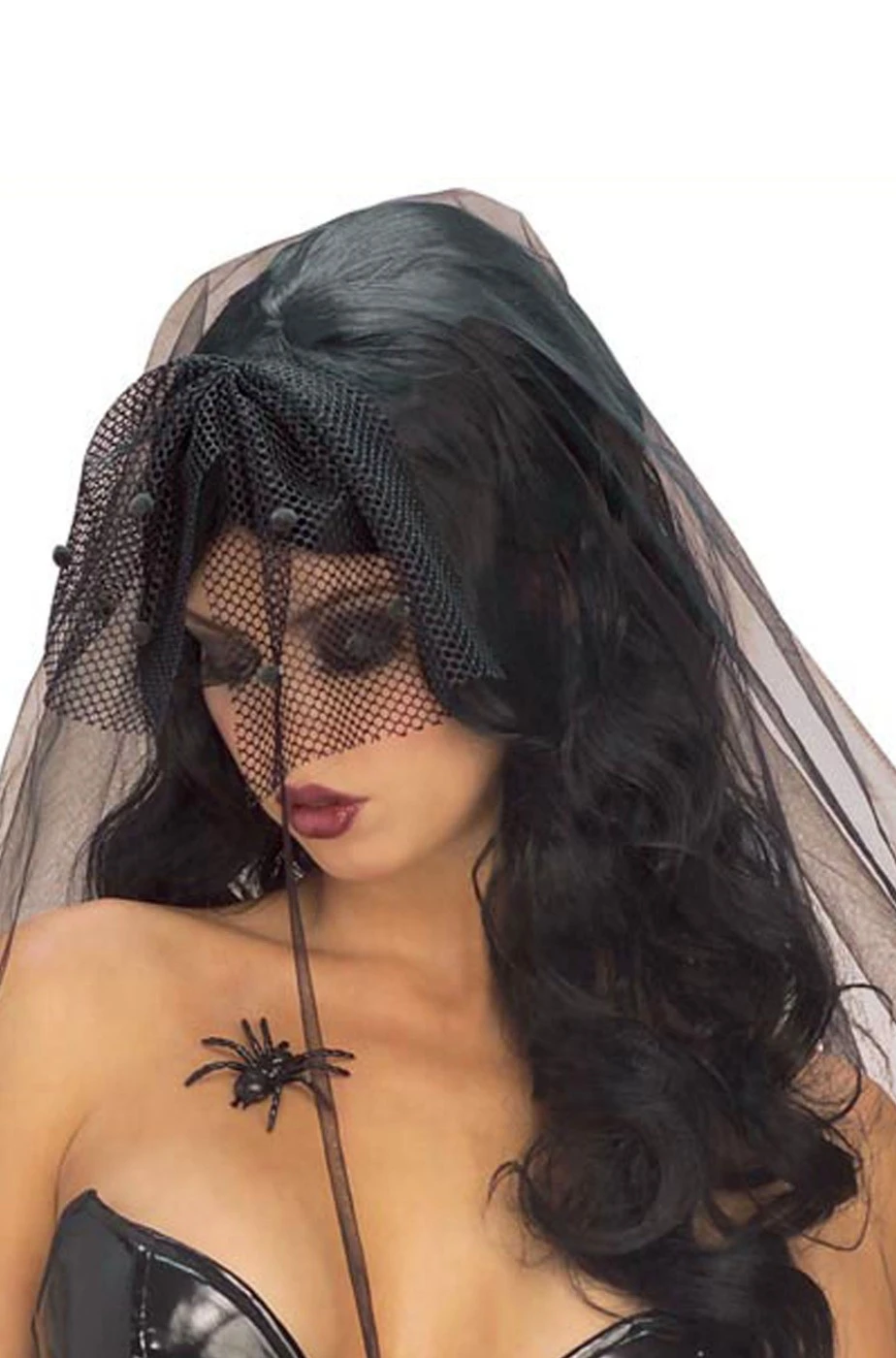 Parrucca Donna Nera Lunga Gotica Con Velo