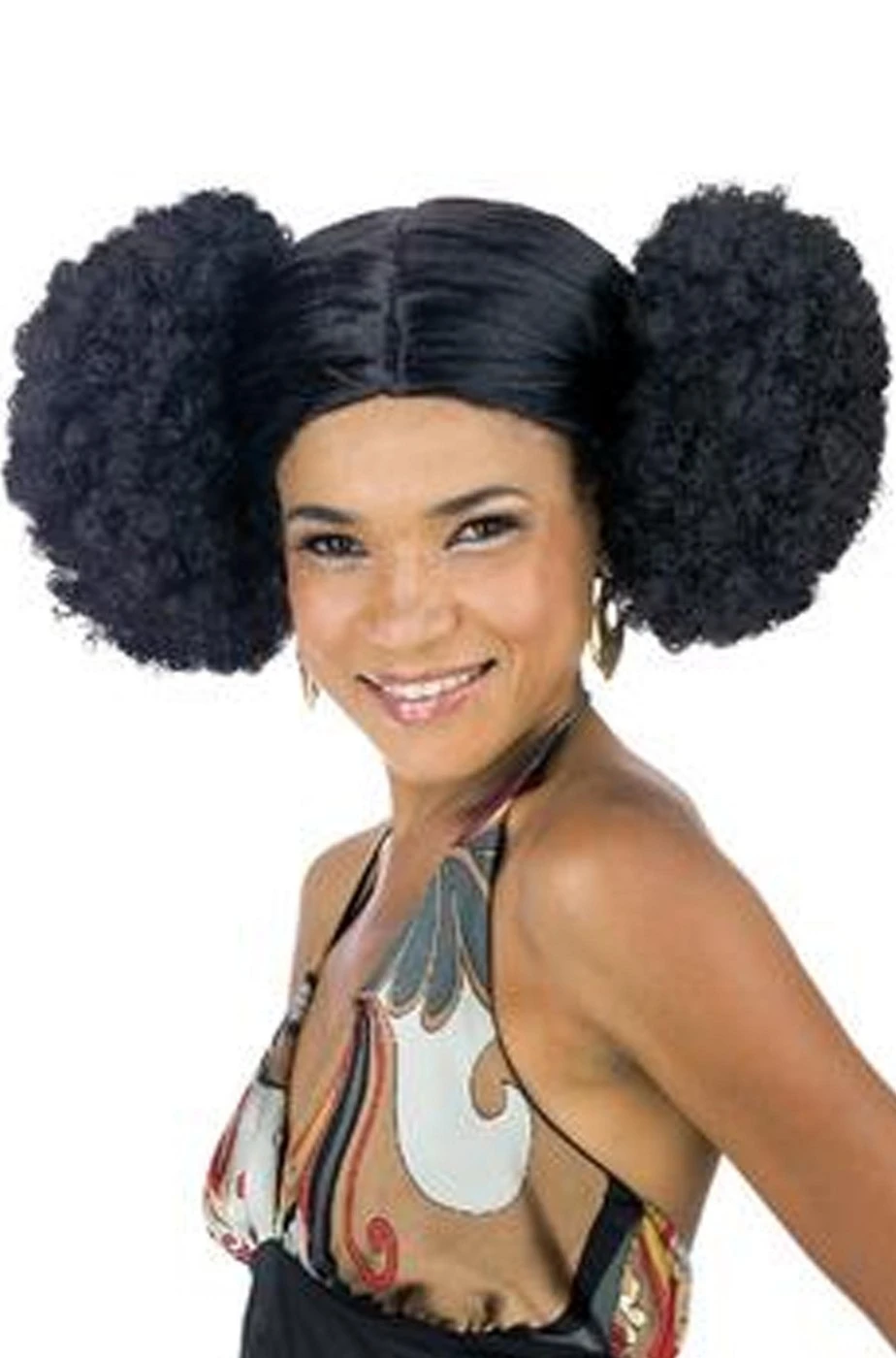 Parrucca Nera Afro Poof Con Puf Puf Laterali