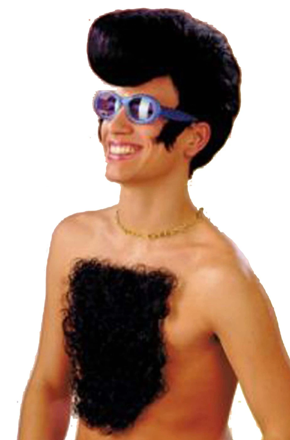 Grande ciuffo di pelo finto nero per fare il petto villoso a carnevale o nelle feste anni 70 da vero pornostar orribile degli anni d’oro.