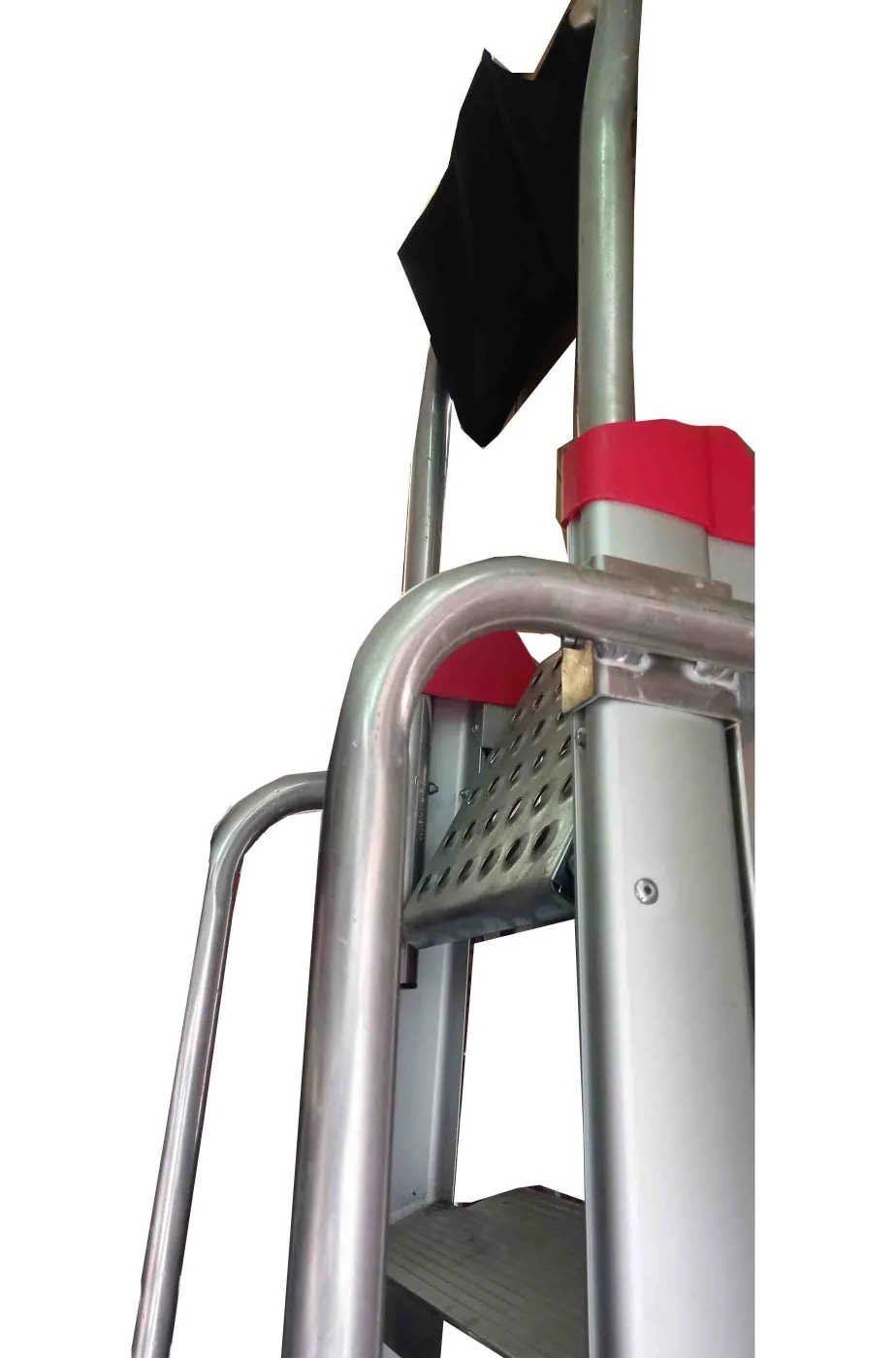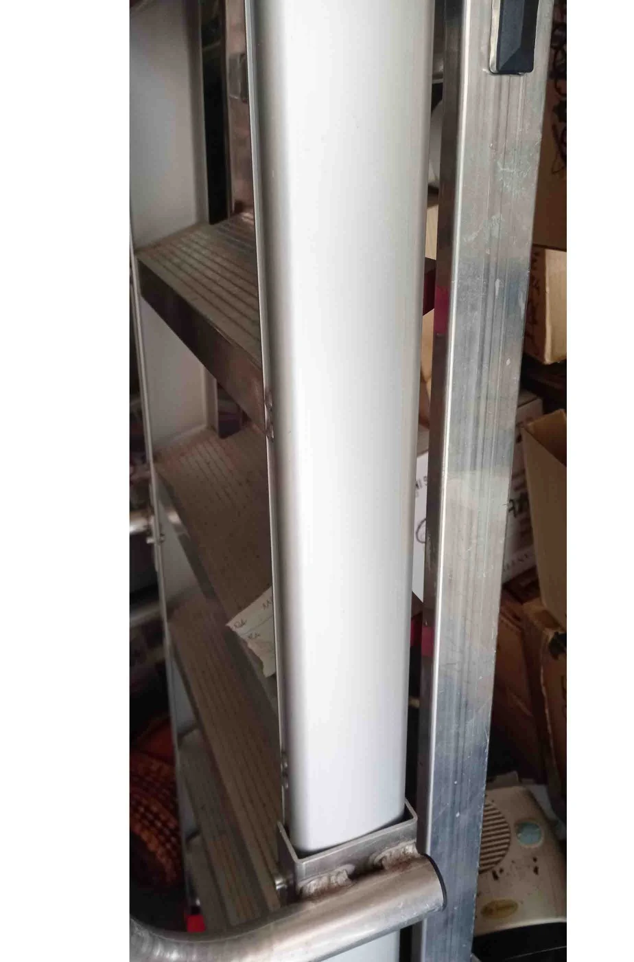 Stupenda e sicura anche per i tuoi dipendenti questa bellissima scala Faraone a forbice in alluminio alta con nove gradini profondi 13 cm e corrimano di sicurezza incluso.