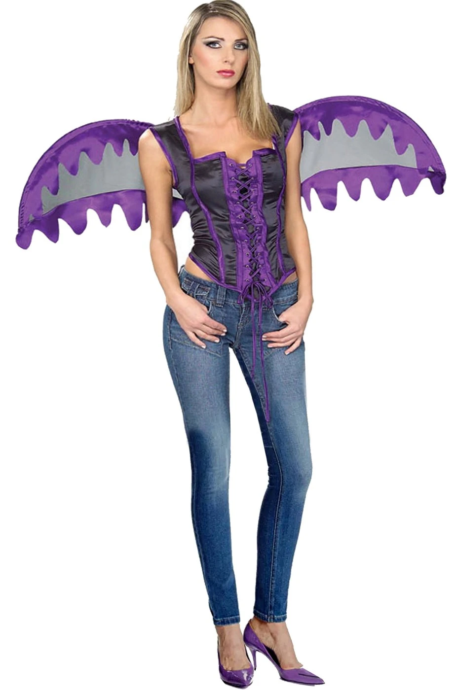 Sei per un vestito di Halloween comodo e che non sia troppo caratterizzante? Allora ecco qui la risposta grazie a questo simpatico set da angelo viola del cimitero composto dall’elegante corsetto a bustino con l’incrocio e le ali con le frange da applicare negli appositi agganci sulla schiena. Un’idea simpatica perché il corsetto può essere abbinato ad una gonna o ad un jeans. Con le ali lo metti per la tua festa a tema Halloween, senza le ali finte lo indossi come u semplice corsetto in tonalita’ di lilla.