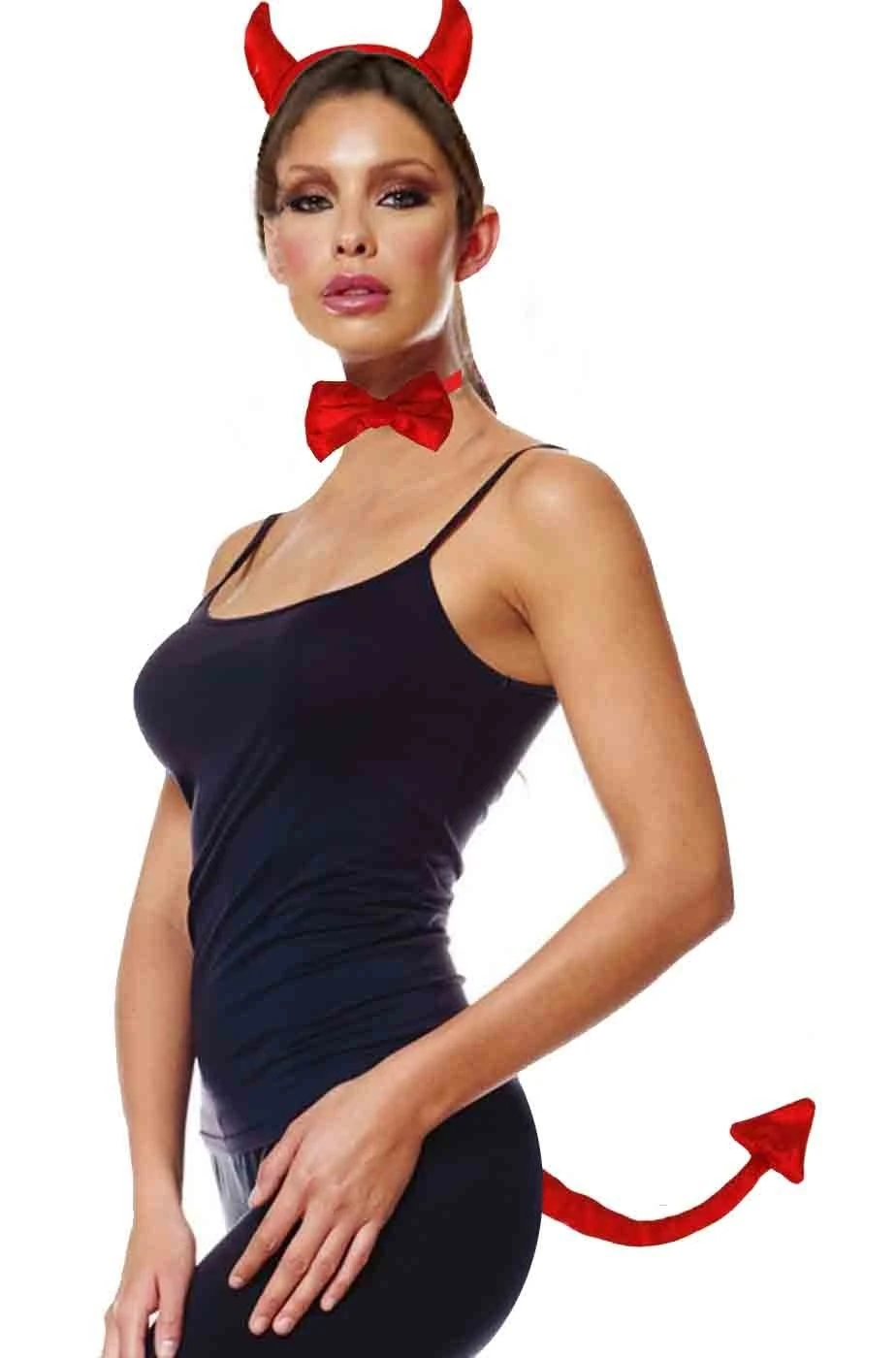 Questo grazioso set può essere indispensabile per realizzare un costume di halloween da diavola o diavoletta o diavoessa ma anche come gagget per una festa di addio al celibato