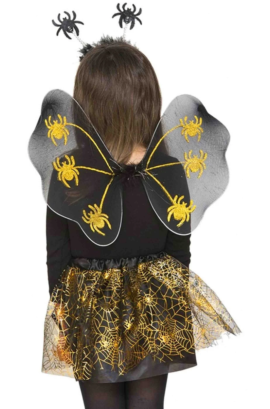 Abito di halloween composto da cerchietto con ragno, bacchetta e gonnellina e ali potrai completarlo con un bel trucco a tema o con dei bei fiocchi cascanti legati sulle braccia e sulle gambe per un effetto ulteriore a poco prezzo.