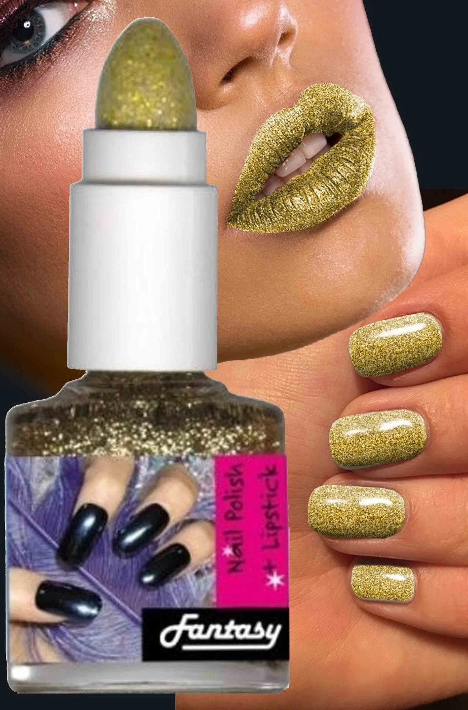 Perfetto per completare un tuo look futuristico nel tema fantascienza, per un vestito da angelo a Natale, come smalto per unghie per capodanno, insomma un set smalto rossetto oro da sfrutare in ogni occasione.