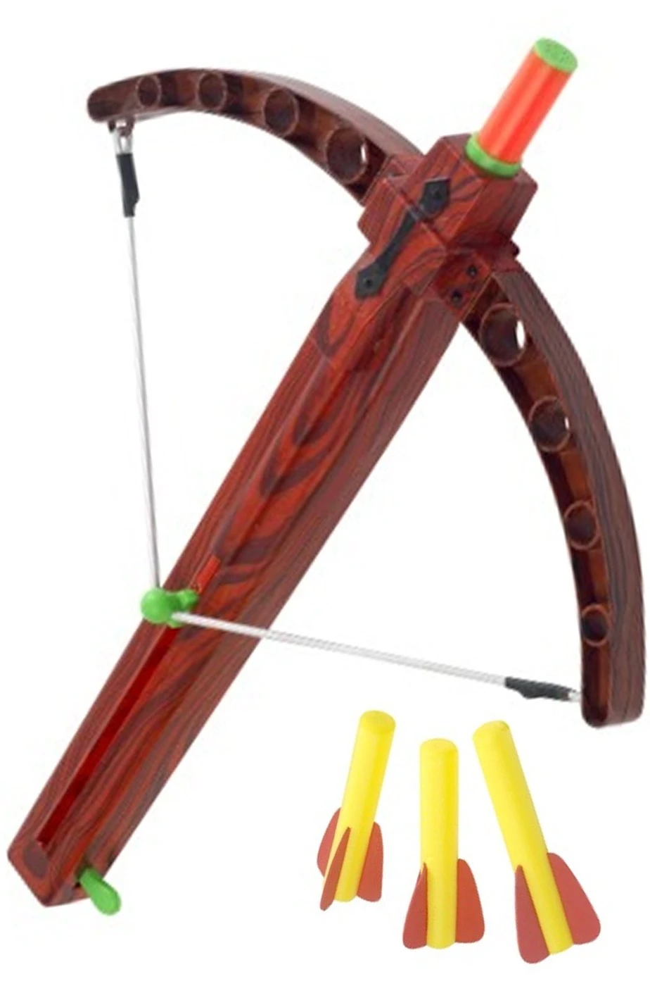 Balestra giocattolo in plastica con colorazione effetto legno.