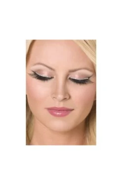 Le fibre sono incrociate per un effetto morbido, spesso e profondo in queste ciglia finte nere lunghe con una elegante fila di brillantini sul bordo palpebra.