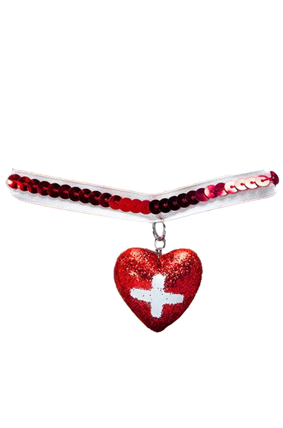 Con il cuore rosso fuoco, i brillantini e la croce bianca questo collarino da infermiera e’ una perfetta collana per infermiera sexy che vuole soccorrere il fidanzato, il marito o l’amante.
