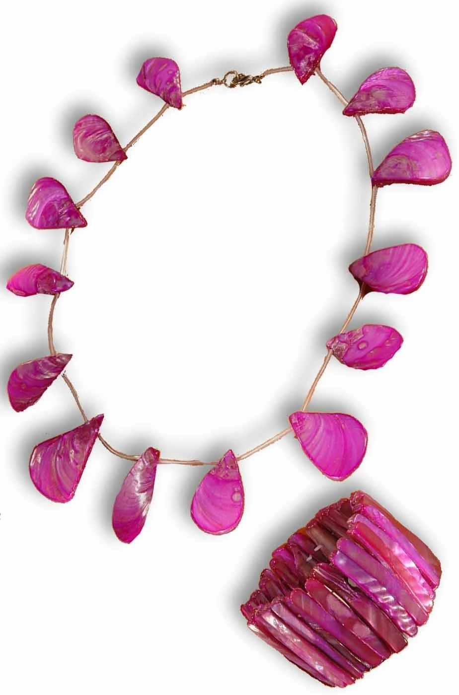 Collana di conchiglie finte con grande bracciale viola per travestimenti hawaiiani, festa hawaii, festa alhoa e tropicale o festa mare Lunga 30cm (chiusa)