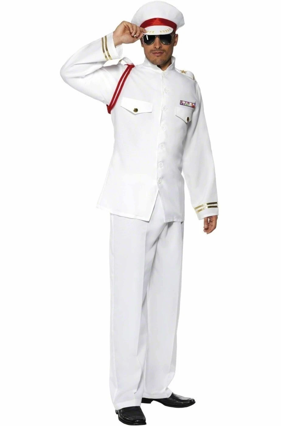 Il costume da ufficiale di marina di lui include giacca, pantaloni cappello. Una bellissima divisa per un vero ufficiale gentiluomo.